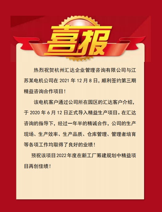 【喜報】祝賀匯達企管攜手老客戶續(xù)約第3期精益項目