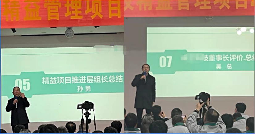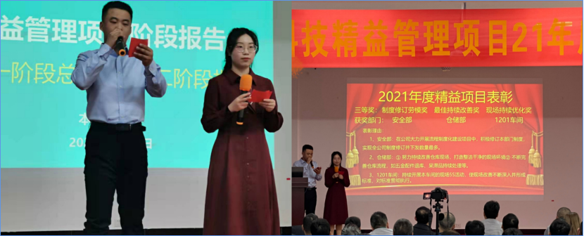 ? ? ? ? 客戶公司總經理對2021年取得的成績表示非常認同和贊賞,并對具體成果突出的項目作出重點表揚,對于項目進展中表現優異的個人和團隊上臺給予激勵頒獎,提出新年指示的同時,鼓勵大家繼續跟隨精益老師為實現2022年新目標、新規劃而繼續努力 。