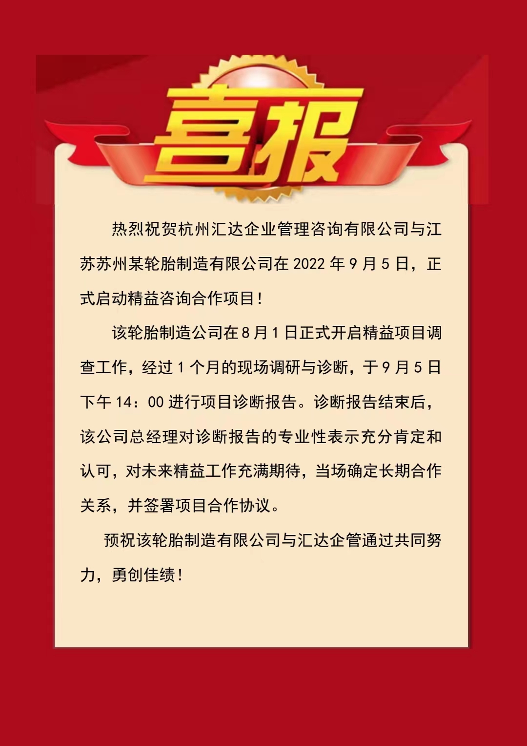 【喜報(bào)】匯達(dá)企管簽約江蘇某輪胎制造公司