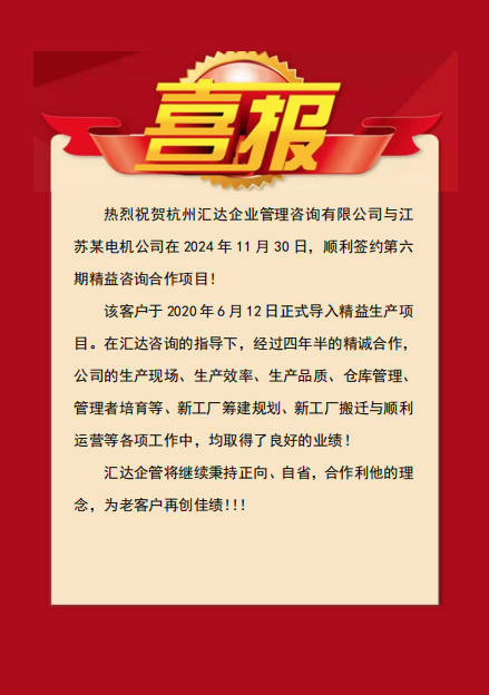 【喜報】祝賀匯達企管攜手老客戶續(xù)約第6期精益項目合作