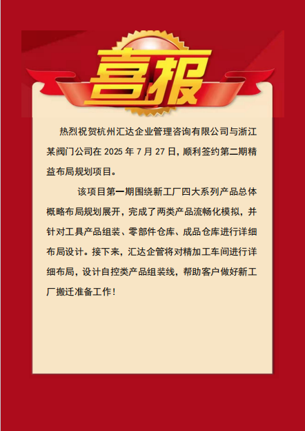 [喜報】閥門工廠續約第二期精益布局規劃項目